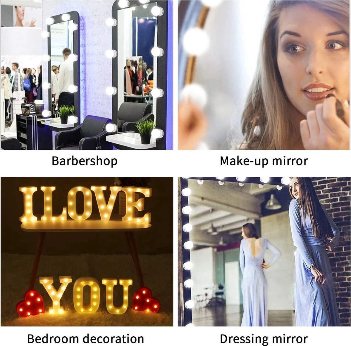 BOTC Hollywood Spiegellampen -10 led spiegellampen met 3 lichtmodi en 10 dimfunctie voor make-upspiegel-LUB90101 ( spiegel niet inbegrepen )