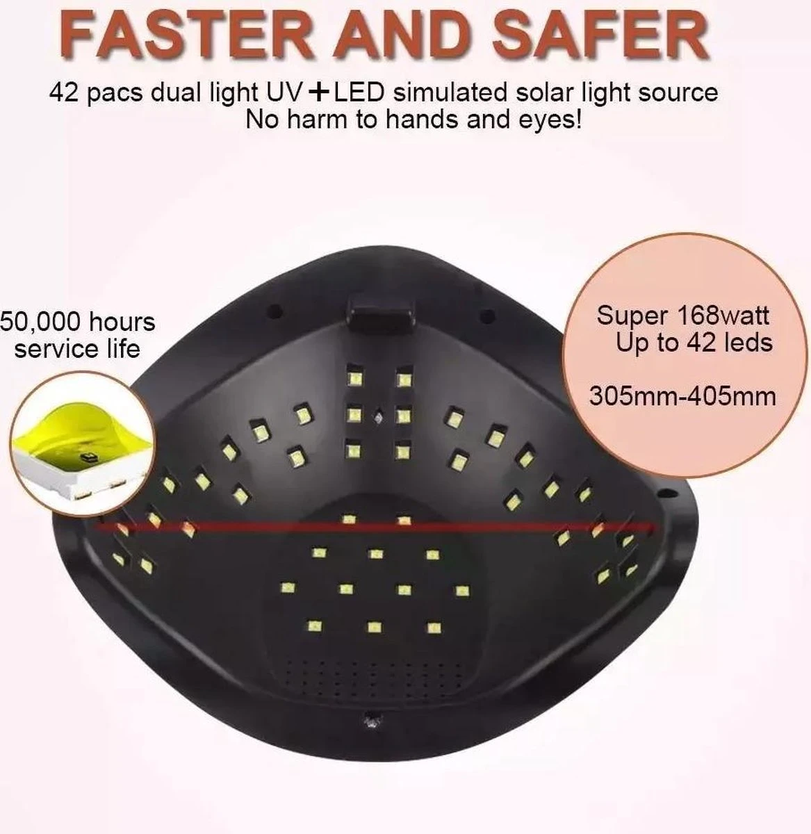 Dankzij de dubbele golflengte technologie 365nm en 405 nm is deze geschikt voor elke gel nagellak en zorgt ervoor dat de gel perfect uithard.